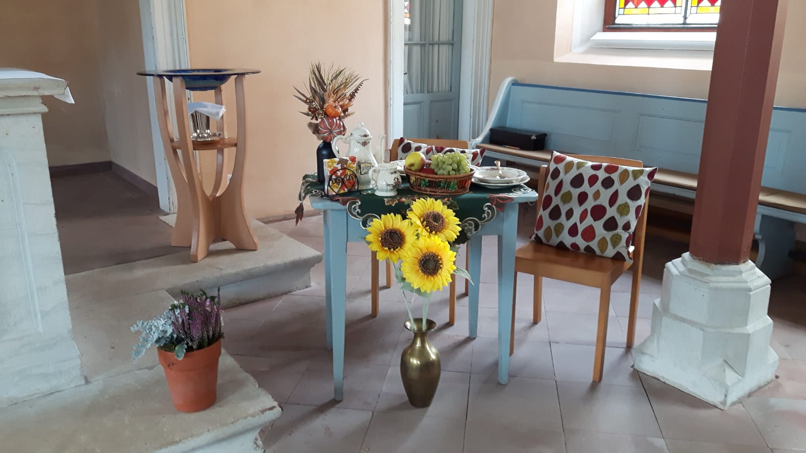 Nach dem Festgottesdienst ist die Gemeinde traditionell ins Gemeindehaus zum Kaffee trinken eingeladen. Dort gibt es selbst gebackenen Kuchen bei gemütlichem Beisammensein.