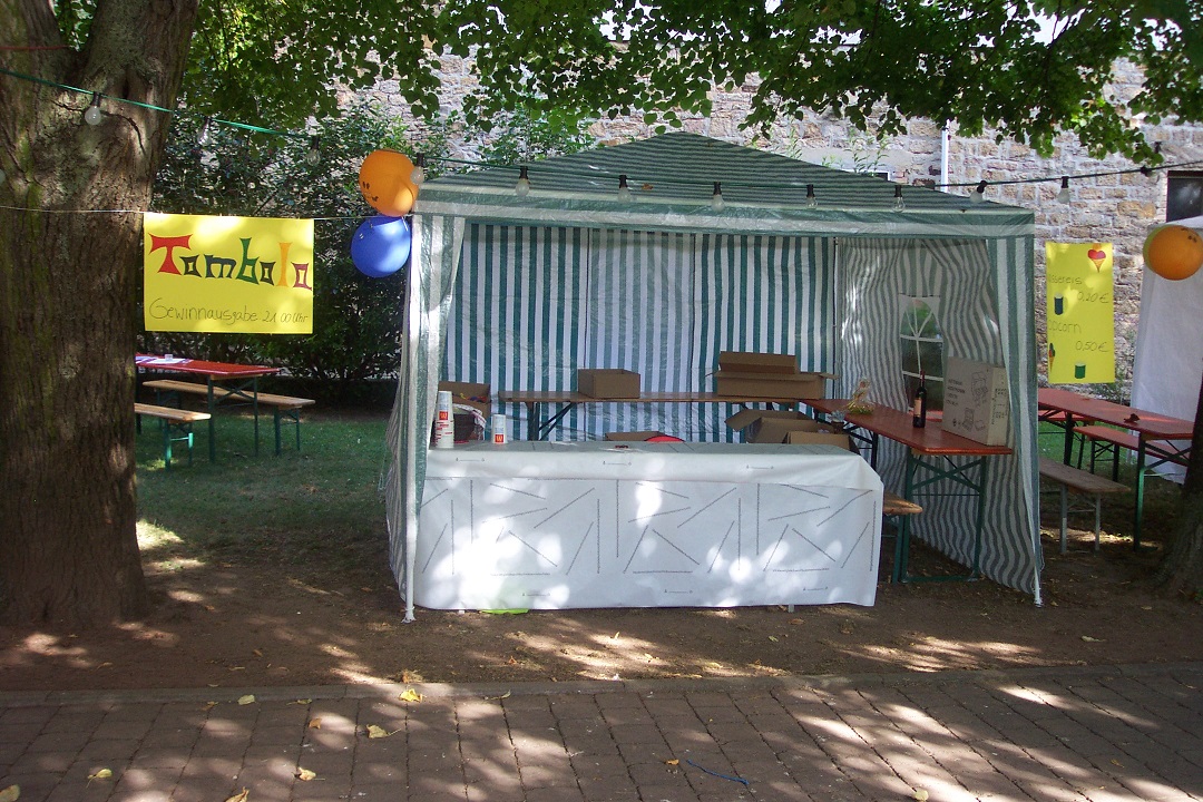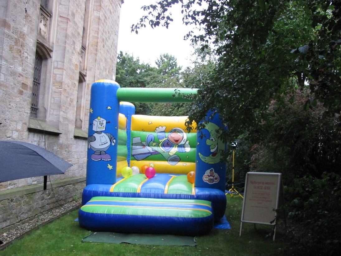 Auch für die Kinder und Jugendlichen gab es dieses Jahr an unserem Spielestand wieder reichlich zu erleben, nur die Hüpfburg sah bei dem schlechten Wetter ziemlich verlassen aus.